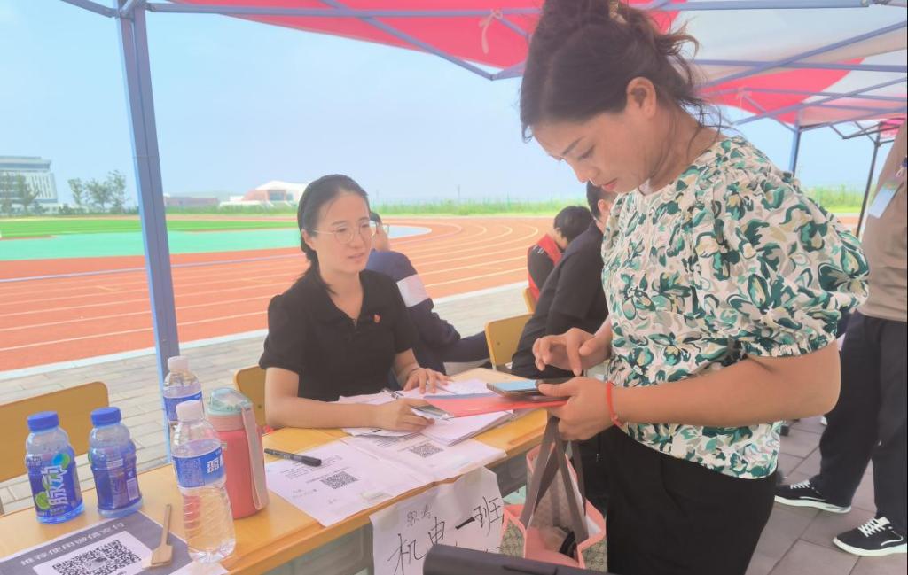 在报到现场,山东化工职业学院中职学院党支部设立了“党员先锋岗”,帮助新生进行饭卡办理。他们耐心的指导新生和家长填写表格,介绍校园生活的注意事项。