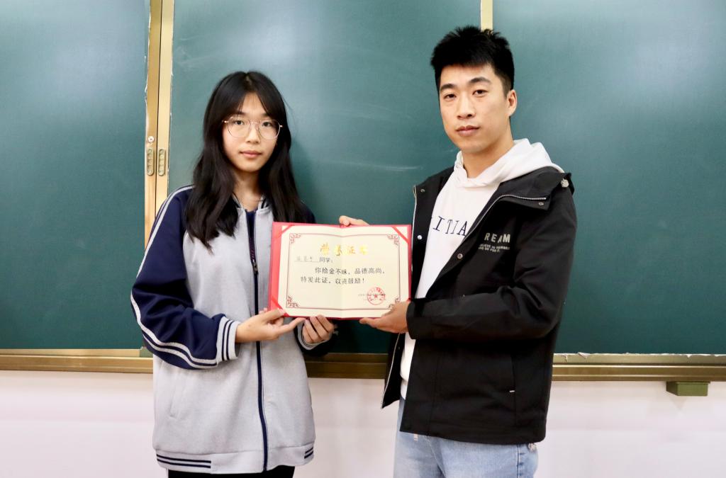 侯茗予同学俯身拾起的,是中华民族的传统美德;昂首送还的,是一颗至纯至美的心。希望全体学生都能向侯茗予同学学习,提高自身的思想素质和道德情操,传递正能量,用一颗纯洁的心灵谱写真善美。