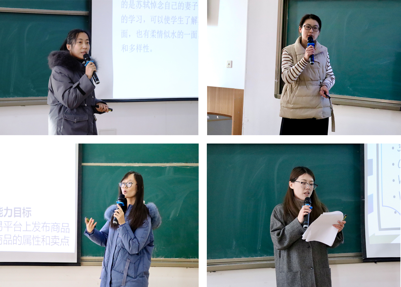 说到教学过程时,教师们围绕着教学目标和教学重难点,使用多种教学手段和方法激发了学生学习的兴趣,将枯燥的知识生动化、情景化,层层深入,都顺利完成了教学目标。各位参赛教师的板书设计或简洁明了,或系统完整,或突出重点,各有所长。