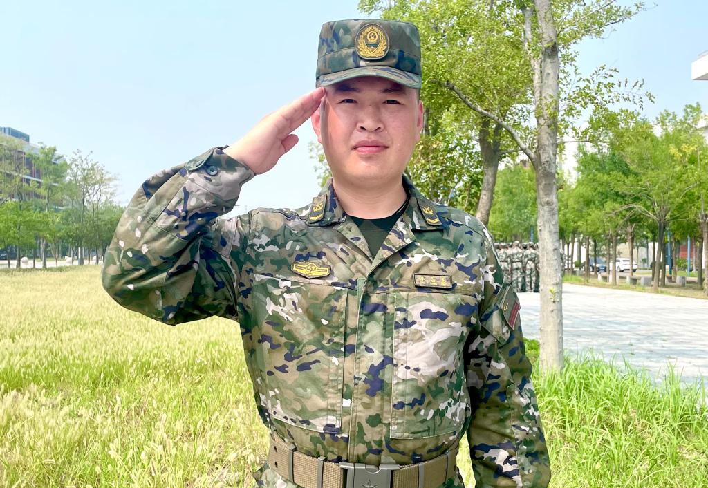 徐强强。2011年12月入伍,2016年12月退伍,曾服役于武警江苏边防总队南通边防检查站,担任集训班班长,获得嘉奖3次,曾参加过青奥会安保。没有军训的经历,就不算完整的青春。军训不仅是一种学习,更是一种收获,一种锻炼。在军训中,你们学会了团结、坚强、勇敢、自律。你们不辜负了青春的热血,不辜负了岁月的沉淀,不留下任何遗憾。你们的青春如同你们的心性,无怨无悔,充满活力和希望。