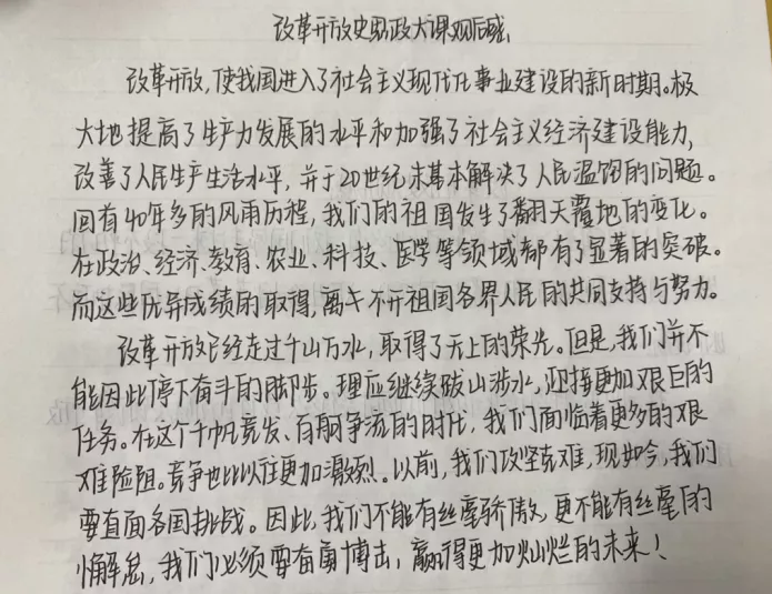 同学们观看完直播后,纷纷主动发表自己的感悟,表示应当践行“社会主义核心价值体系”,要从身边做起、从我做起。做好自己本职工作,学好本领。其次,积极参加力所能及的社会实践活动。都表示:历史和实践都表明,中国特色社会主义道路就是引领中华民族前进的正确道路,深入学习“四史”,更能深刻体会我们的国家从弱小变为强大的不易,能更深地增强我们的爱国情感,坚定我们的理想信念,努力为社会主义事业奋斗终身。