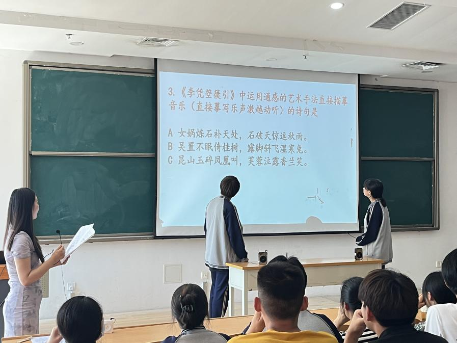 经过初赛选拔,22级、23级各有12位参赛选手进入决赛圈角逐,本次比赛以个人为单位,分为“谁与争锋”、“火眼金睛”和“飞花令”三个环节推进。参赛同学在比赛中展现了出色的记忆力,同时传递了诗词背后的深邃意境与情感力量,让同学们欣赏的同时感受到诗词的魅力,共同感受中华文化的博大精深。