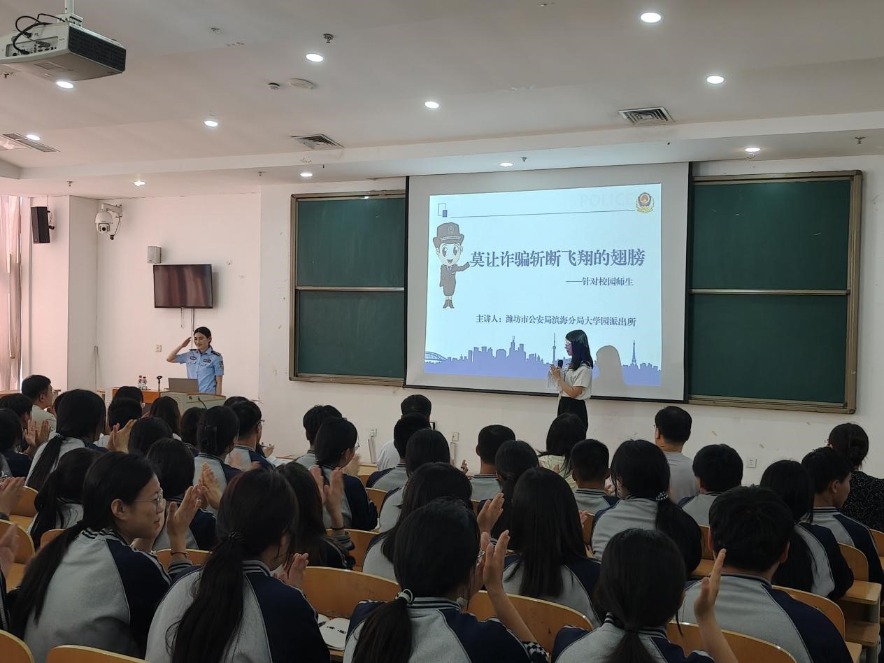 在能容纳100余名师生的综合教室座无虚席。派出所警官,以《莫让诈骗斩断飞翔的翅膀》为题,将法律知识与校园场景相融合,从“什么是校园欺凌”“校园欺凌的危害与表现”“如何预防校园欺凌”等方面,深刻解读了校园欺凌行为可能造成的影响,教育学生用正确的方式保护自己,提醒他们在受到欺凌时要及时向老师和家长求助,在寓教于乐中扣紧校园“平安锁”。