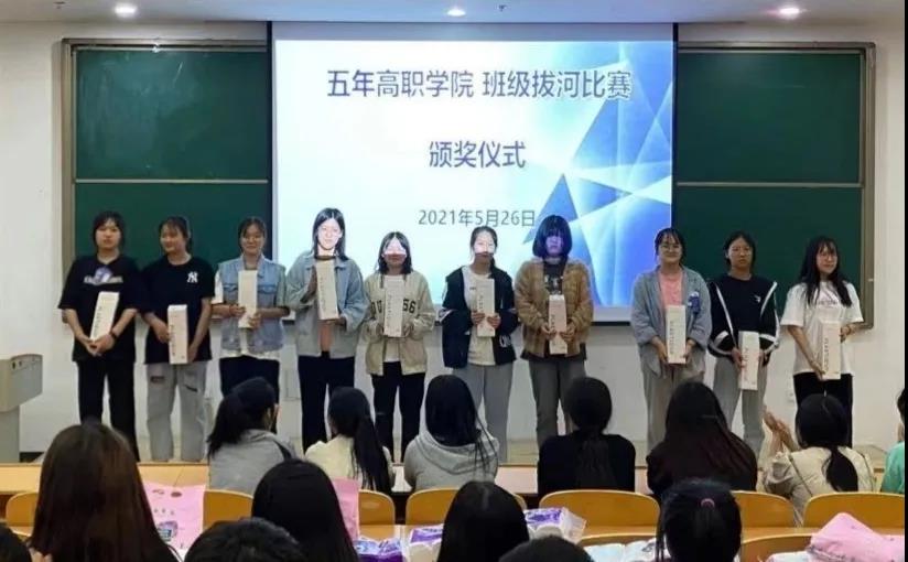 为弘扬五四精神,喜迎建党100周年,同时也为了激发同学们锻炼身体的兴趣,增强团体合作精神,展现出我院学生用心向上的精神风貌。本着团结一致,友谊第一,比赛第二的原则。近日,五年高职学院举办了以“青春扬帆,筑梦启航”为主题的拔河比赛。
