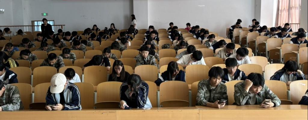 大赛分为初赛和决赛两个阶段,初赛采用线上答题的形式,根据答题正确率进行排名,22级和23级两个级别分别选拔出进入决赛的参赛小组,22级选出6组,23级选出8组。下图为学生用手机小程序认真进行线上答题。